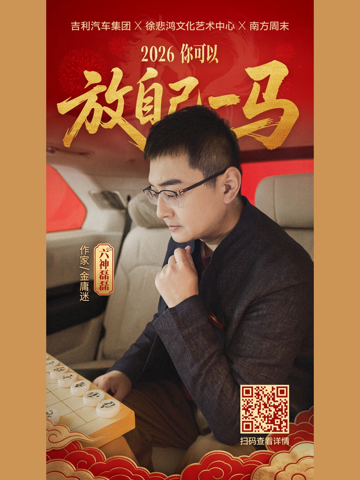 吉利汽车集团携手徐悲鸿文化艺术中心与南方周末,共同开启2026“吉利中国年”,三方以“马”为精神切口,邀请徐悲鸿长孙徐小阳,与作家六神磊磊展开了一次关于“马”的文化对谈,尝试为“前行”提供更多维度的理解:既有一马当先的勇气,也有放自己一马的智慧。这不仅是一次节日的文化表达,更是一场回应当代人精神处境的提问——在奔跑成为常态的生活里,我们如何与心中的那匹马相处。